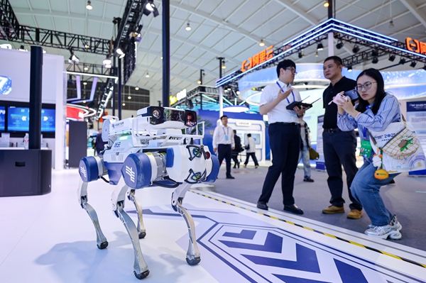 在以“数字赋能安全生产”为主题的昆明展区,AI智能机器人和机器狗热情地与观众互动,昆明公安AI数字人“春晓”吸引了众人的目光。展区融合科技、生态、未来等元素,充分展示“数字云南”“数字昆明”在数字基础设施、数据要素价值、数字经济发展、数字政府建设和数字公共服务等方面取得的成果。