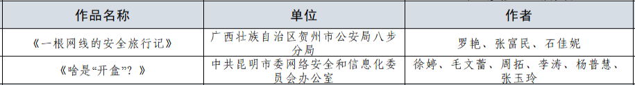 2025年国家网络安全宣传周网络安全微视频征集活动作为2025年国家网络安全宣传周的一项重要活动,由共青团中央宣传部、中央网信办网络安全协调局指导,共青团云南省委、云南省委网信办主办,共青团昆明市委、昆明市委网信办承办,本次活动以“网络安全为人民,网络安全靠人民——以高水平安全守护高质量发展”为主题向全社会公开征集微视频,自8月启动以来全国网友积极参与、作品精彩纷呈,共收到来自全国各地的报名作品共438个,经专家初审、复审和终审共评选出一等奖作品1个,二等奖作品2个,三等奖作品3个,优秀参与奖作品30个,现将获奖作品公布如下↓