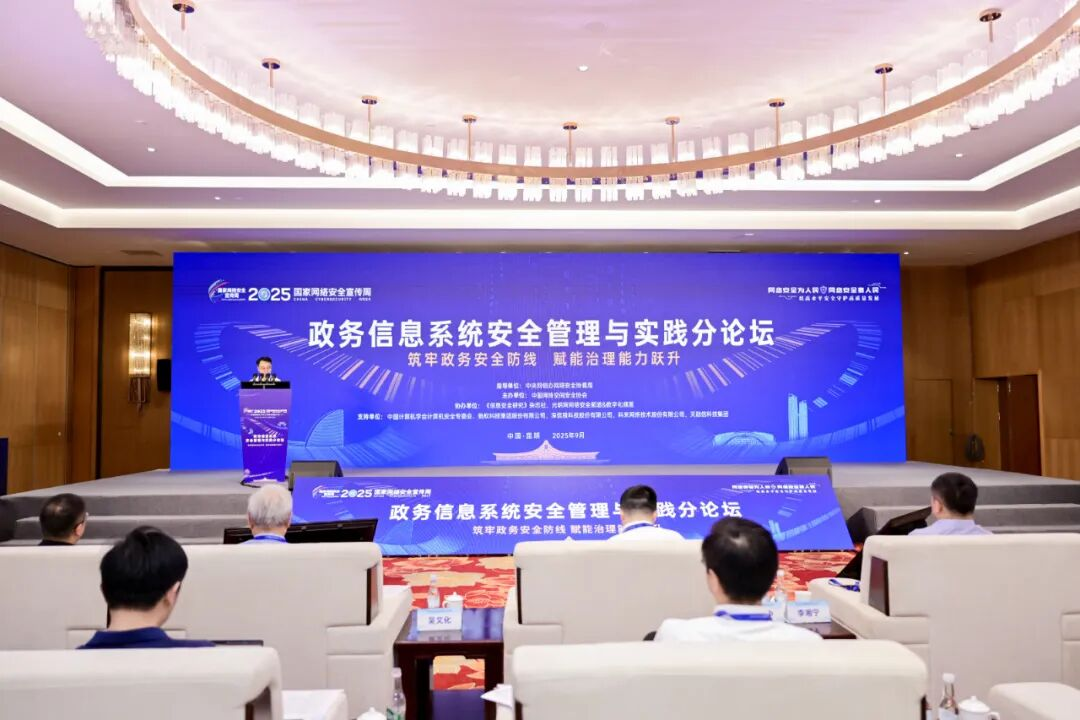 2025年9月17日,以“筑牢政务安全防线 赋能治理能力跃升”为主题的2025国家网络安全宣传周·政务信息系统安全管理与实践分论坛在昆明召开。论坛由中央网信办网络安全协调局指导,中国网络空间安全协会主办,《信息安全研究》杂志社、光明网网络安全频道&数字化频道协办,中国计算机学会计算机安全专委会、蚂蚁科技集团股份有限公司、深信服科技股份有限公司、科来网络技术股份有限公司、天融信科技集团支持。